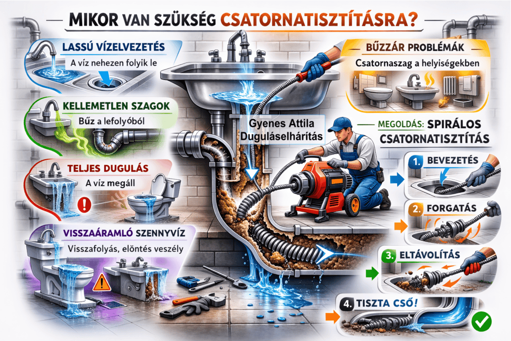 A csatornatisztítás elengedhetetlen a csőhálózat megfelelő működéséhez. Ha a lefolyók lassan engedik le a vizet, kellemetlen szagok jelentkeznek, vagy már dugulás is kialakult, érdemes mielőbb szakemberhez fordulni.